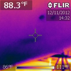 Infrared thermal image of hull delamination on the lower right side of the image.